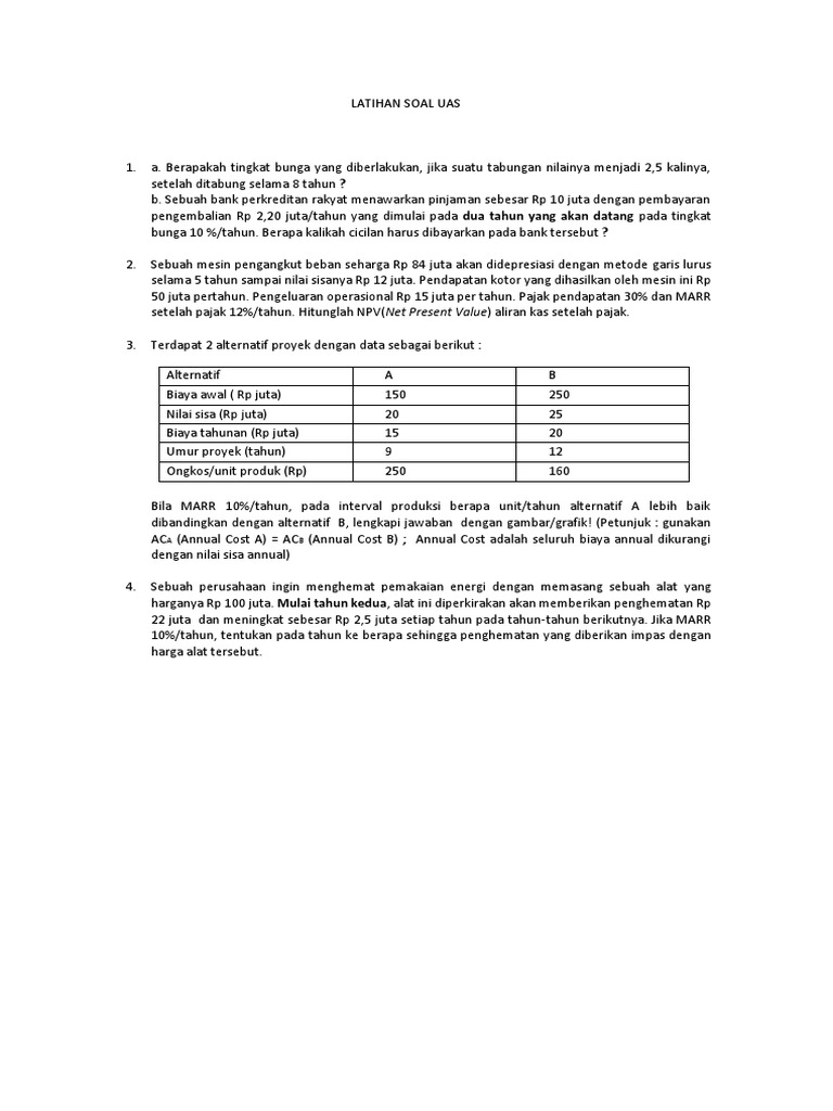 Soal dan jawaban ekonomi teknik. Maybe you would like to learn more about one of these? We did not find results for: Check spelling or type a new query.